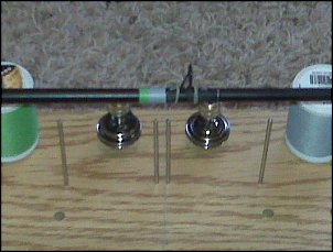 What base colors did you use on that tiger? It looks like dark green from the pics. I really like those subtle, dark tiger wraps. In the future when you do tiger wraps use almost no tension at all. I tighten my springs just enough so that the nuts don't spin, that way you can get the threads close together and even and still burnish the crap out of them. I wrap the overwrap pretty tight so it will stay perfectly straight. Last edited by Jrob78; 04-02-10 at 04:34 AM. |