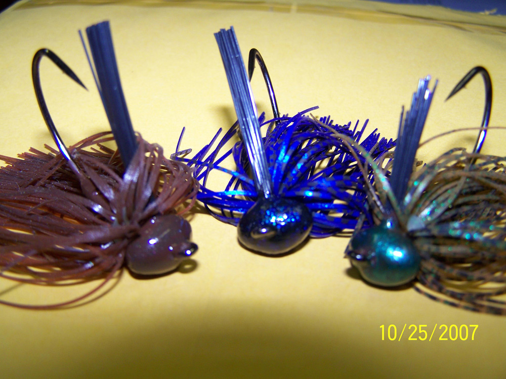 Design is important for the various structure you chose to fish. One type doesn't fit all situations. As far as quality, a medium stiff weed guard will save you a lot of weed pick'n. Softer bristles are useless. A thin strong hook works better for me than thicker steel. Paint jobs chip, but the better ones have epoxy coating for more chip resistance. Silicone skirt or living rubber skirts should be long enough to allow you the option of trimming. Sometimes bass like a longer skirt and trailer. Collars should be of a good rubber because nothing gets me more p.o'd than seeing a bunch of skirt strands lying on the floor of my boat because the rubber collar was old or cheap and tore. I like rattles that have a barb to hold the trailer in place. Rattles are nice to have, but not always useful IMO. This year I've been tying more football head jigs with weed guard for rocky areas and I've notice fewer hang-ups. I like wedge heads for weeds, but use the standard club-shaped head shape for swimming jigs and working pebble bottoms, rock walls, steep slopes and casting under overhangs. |