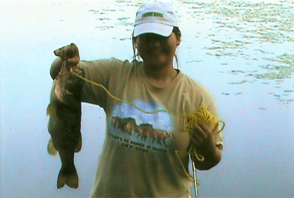 Well my bass education continues. Unfortunately, the summer up here in the U.P. has been pretty dismal thus far. As such my daughter and I have only been out about a dozen times. I work 2nd shift so fishing on work days is pretty much out of the question. Anyway, my tackle box is stocked fairly well with cranks, spinnerbaits, frogs, plastic worms, etc. However, I along with my daughter are crankbait addicts and haven't spent any time trying other lures/baits. Oh we've tossed a few plastic worms, frogs and such, but after about 5 minutes we revert right back to throwing Rapalas. We've had good success for the most part catching 15 bass on our best trip and 4 on our worst trip. Unfortunately, we were out last week and got skunked.....sigh. So we headed out yesterday and the only tackle we brought were 5" senkos, hooks, pliers and a stringer. Due to our schedule we only had 2 hours to fish. We were on the water right at 2pm and we both wacky hooked our senkos (watermelon) and within 10 minutes I landed a nice 2 pounder. I was absolutely ecstatic since it was the first fish I caught using a plastic worm. I had my daugher take my picture which I was going to post here. Not more than 5 minutes after releasing it my daughter hooks one and it was just a tick smaller than mine. I wanted to take her picture holding it, but she wouldn't lip grab it....lol. So I release it and before I could even get the camera back in the bag and stowed she has another one hooked. Just by the pull of the rod I knew it was going to be decent size. It was diving deep and pulling the drag and about 15 feet from the boat it jumped out of the water and I'm not really sure about my daughter, but I'm pretty sure I crapped myself. Ended up being 4lbs 6oz which beats my best by a pound and 2oz. We both caught one each afterwards (about a pound) and then we ran out of time. Once on shore I "forced" her to lip grab her fish for a picture which you can tell from the photo that she's not really into lip grabbing.....lol. So we have about a month left and once October hits it day by day since the weather can get pretty ugly up here. We've reloaded on Senkos and are hoping to get out Tuesday or Wednesday of next week. Oh the pressure of beating 4lbs 6oz Sorry about the picture quality. It was taken using a video camera and was scanned. |
