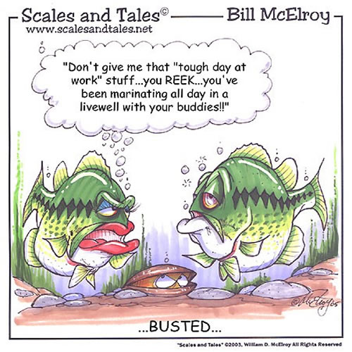 I kind of want to put it up as my avatar display but i really like Lucky the bass, a comic created by Bill Mcelroy called tales and scales. Lucky's his name, the large mouth Bass. Because he's had more boat rides than any other fish in the lake and always survives to tell his tale. lol Its corny i know but I like it.