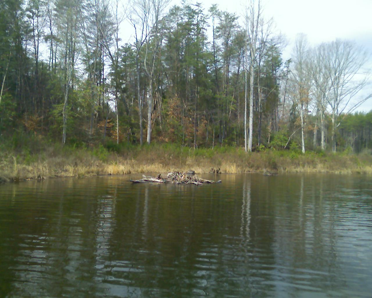 Got on it for the first time and was impressed with the structre and cover found on the lake. I've heard about people catching a lot of fish and big fish so I wanted to check it out for myself. Due to the winds I was limited to fishing just two coves and one feeder creek. I only caught three small bass as the larger fish had not moved up into the shallows yet. I didn't see any bluegill or baitfish shallow either. The water was clear but dark with 4-6' of visibility. I didn't see any schools of bait fish on my sonar which was surprising. Any fish seen were in 16-19' of water, also surprising as I was catching bass in less than 3' on Lake Anna just a couple days ago. Here are a few pics. Can't wait until the bass move shallow. Should be a fun place to fish .Sonar pic (other than my reflection) shows a creek channel that comes up to the big stump flat. Fished it for a long time thinking they'd be stacked up on the edge or in the channel but only one bite and no fish . The sticks in the last picture were in the channel and standing in 11'.