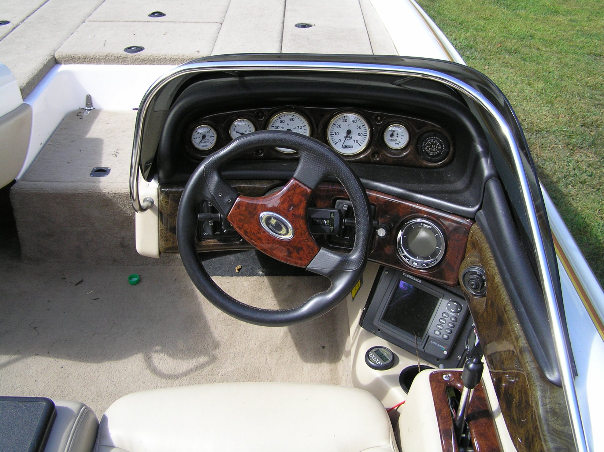 2006 gambler 22 ft mercury 250xs, 2 stainless props, T.A.C built in trim tabs, hydraulic jack-plate and lift and trim in dash indicators, three pedestal seats, sony cd stereo, live wells pump in pump out aerated, dual manual bilge pumps and dual automatic bilge pumps, Lowrance lf6 1440 in dash depth finder, Lowrance lms 332 color graph/GPS, stealth charging system, motor-guide 36 volt digital trolling motor,Lowrance x 125 graph up front,4 rod lockers and tons of storage 52 gallon gas tank Mercury smart-craft gauges