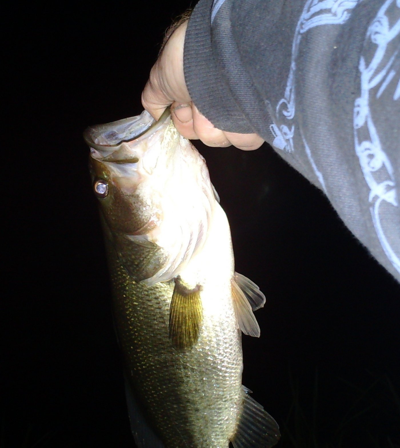 We started out around 5:30pm and fish until a bit after midnight . After having temps in the upper 70's for most of the week the temp tanked yesterday to the low 60's and into the 50's after the sun went down . The fishing was slow , almost as if the fish just turned off . The only ones we did get came off of a rage tail toad and a black buzz bait well into the night .