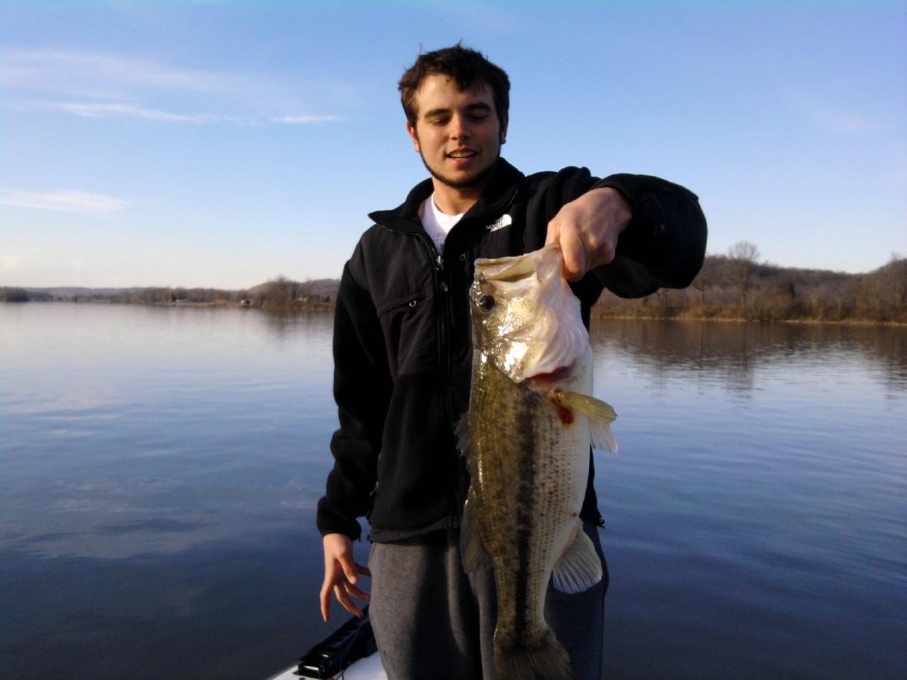 I would really like to go fishing, but school is just about taking up every last second of my time. (I am actually turning stuff in through my schools website as I am typing this). But, just because I haven't been able to get on the water my cousin goes and shows that you can in fact catch hawgs in the winter time. Only bite he had in a full three hours of fishing, which is really rare for us. Take note of the non-straight arm. Also an interesting fact about this fish is that she had a leech attached to her that was twice as long as she is.