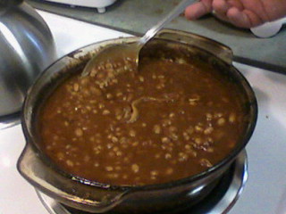 Ok guys, on todays menu we got a big thing a pork's, some home made baked beans, and slaw.