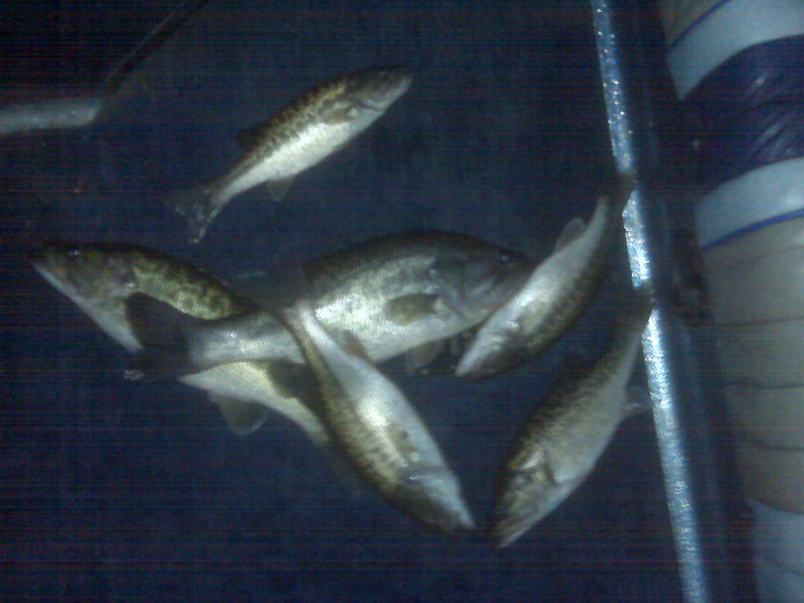 Well we finally got the boat runnin so we decided to take it out fishin last wednesday, runnin great hooked up to the earmuffs in the front yard. Just as luck would have it we couldnt get it to crank after we put in so we just trolled around. We fished about two and a half hours and ended up with 3 chunk spots(1st and 2nd pic). went back out tuesday to check her out and finally got her fired up and startin to get er runnin and it was 52 and wind was 15-20 mile gusts, choppy choppy water, but after we finished testin it out we fished about 15 minutes and i caught a spot 1.5 lbs on a rattle trap (no pic) then we left freezing! went back out today after fillin the boat up and caught 7, missed a pile of em but ended up with our 2 best fish being a 3.5 LM (3rd pic) and a 2 lb spot that my brother caught(4th pic), only kept 6 (5th pic) cuz number 7 was a 10 inch dink. great fun day of fishin tho