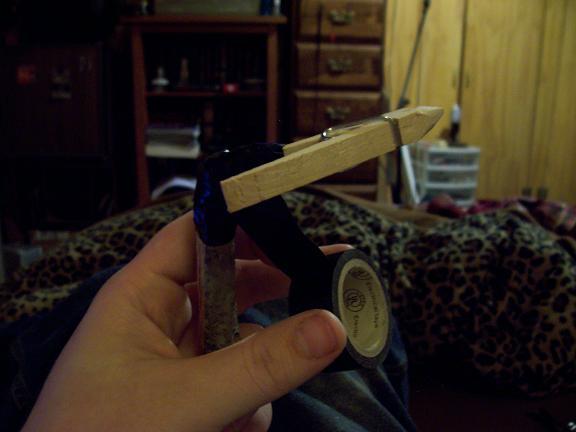 Things you will need: 1. Clothes pin 2. Electrical tape 3. Rubber bands 4. a stick 18 inches long 5. A file 1. First you need to file down the tip of the clothes pin down so that the whole tip is pressing together completely. 2. Now file all sides of the clothes pin down at an angle coming to a point. 3. Now take the clothes pin and tape it to the top of the stick so that the clothes pin opens and closes sideways. Tape it back and forth in an X shape so that it holds the clothes pin firmly at a slight upward angle. 4. Now take a rubber band and place it around close to the spring of the pin and make sure you twist the rubber band and rewrap it untill tight. Add another 2-3 rubber bands until desired holding strength. Now you have a jig/fly tying vice that fits comfortably in between your legs that you can use anywhere, and all made simply with common house held materials. |