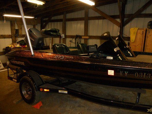 Well here is my boat that I am going to sell it is 17' 6" long it is really nice with lowrance electronics. It has a 150 johnson on it. the trailer has brakes and the swing away tounge and it has the reverse lights in the trailer. The pictures don't do it no justice so if anyone is interested in it I will pull it out of the garage and take some better pictures. I am asking 7500.00 for this boat.