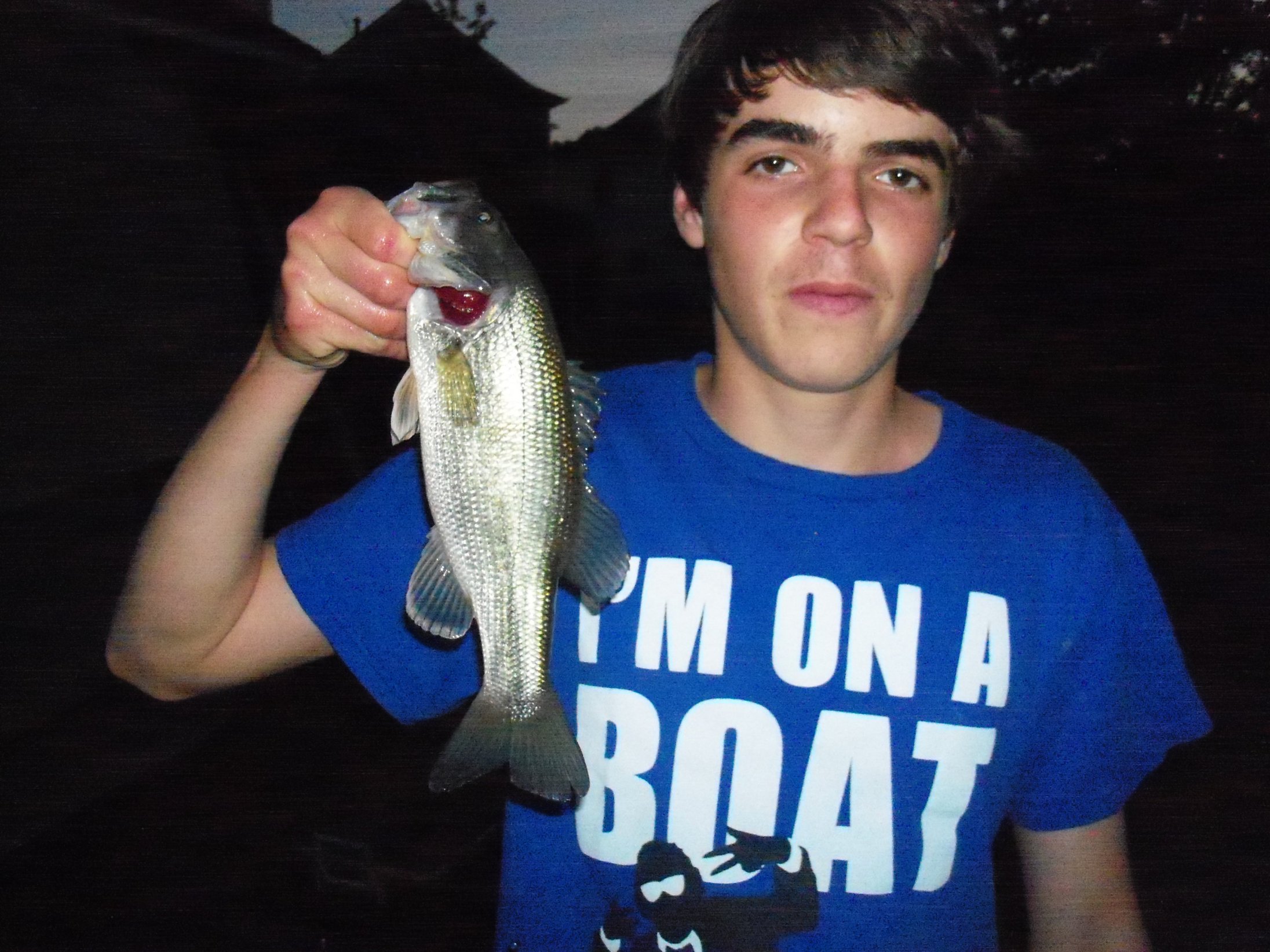 This was the biggest bass i had ever caught in my entire fishing experience, (which is about 4 months lol) So as you can imagine, i was very excited. I caught it out of the pond in my neighborhood which is very small, and only gets to be about 4 feet deep. Surprisingly, this pond has produced the biggest bass and crappie out of every other Huge lake my friends and I have ever fished. It was about 6:45 pm, and the sun was setting. I was throwing a KVD shallow driving square bill crank bait in about 2 ft of water. I was fishing with my buddy who was across the pond on the other side, and i yelled to him, "Hey stevie, did you know that i have never caught a bass on a crankbait before?"(which was true)....And he replied, "Its because you dont know how to fish it."......Then all of a sudden, I got a supposed snag, i started yanking on it and it didnt budge, then it darted out and that was when i realized it was a fish. Funny thing was the fish initially just sat on the bottom like a dead weight. I think he was sitting on his bed, and then just inhaled it lol. It was an amazing fight. Later on, I ended up breaking the bill off of the shallow diving crank bait when i tripped over a branch in flip flops, but i decided to still use it any way. About 5 minutes into fishing the crankbait with no bill, i caught a healthy, much smaller bass. The big bass ended up weighing in at 4 11", and the small one, well it didn't read on the scale lol. But over all, a great day resulted in great fish, and one jealous friend. Now i am more confident in the crank bait since I have caught fish on it.