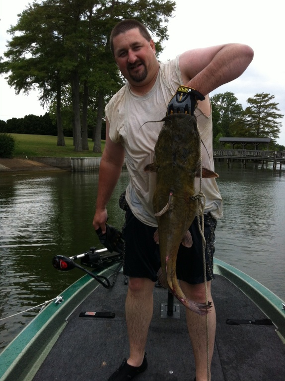 It's not a bass, but I did want to share a pic of the first flathead cat I ever caught Noodling.