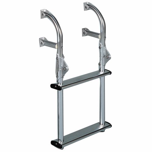 Hey bassfisher,does the 3 step hang far enough in the water so it is easy for the wife and daughter to climb out of the water without killing them selves? also i only count 2 steps on your ladder. How is it bolted on your transom? thanks carroll out.
