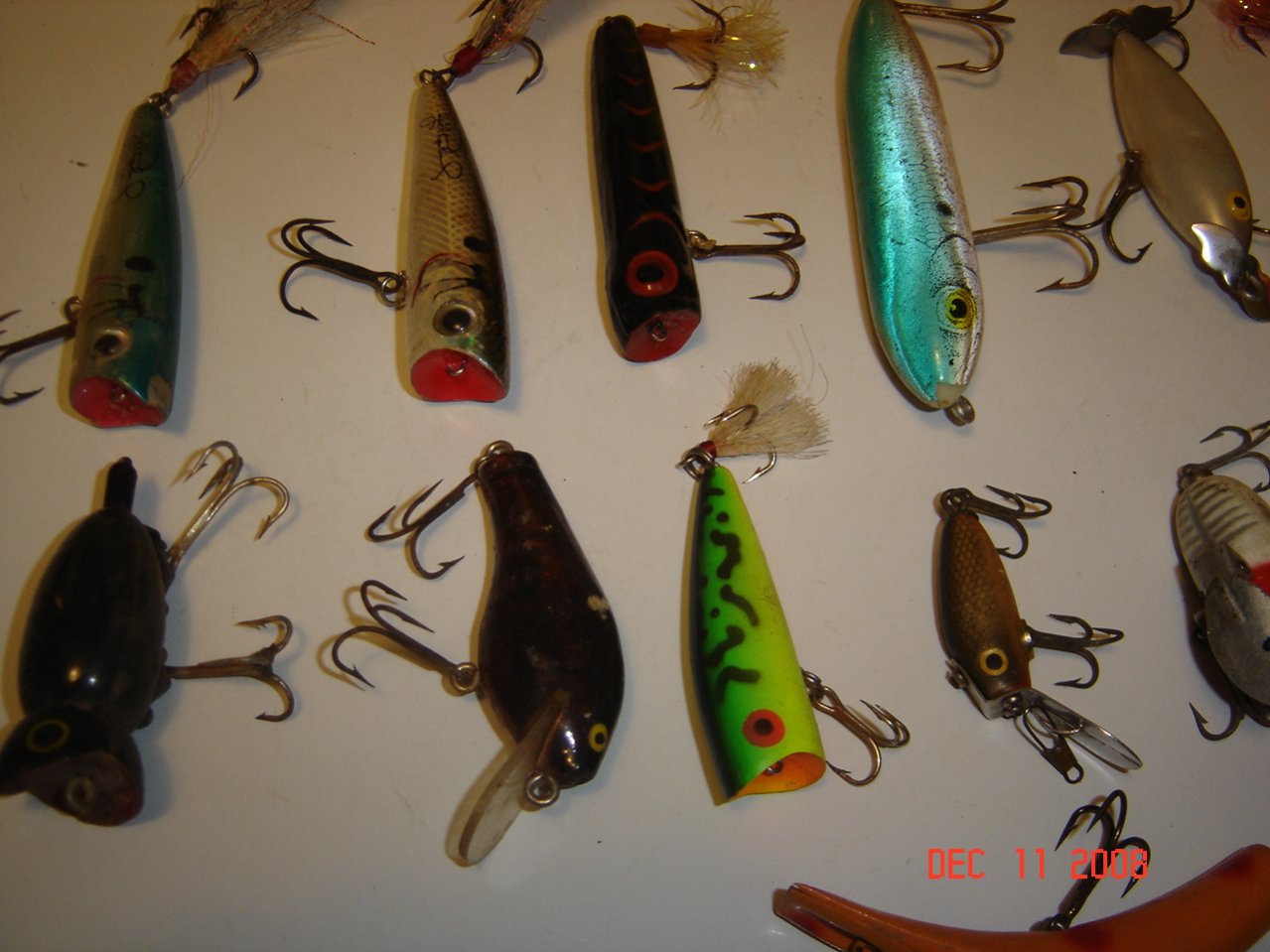 top picture has 2 chugbugs 3 rapala pop-r's and a rebel popper..