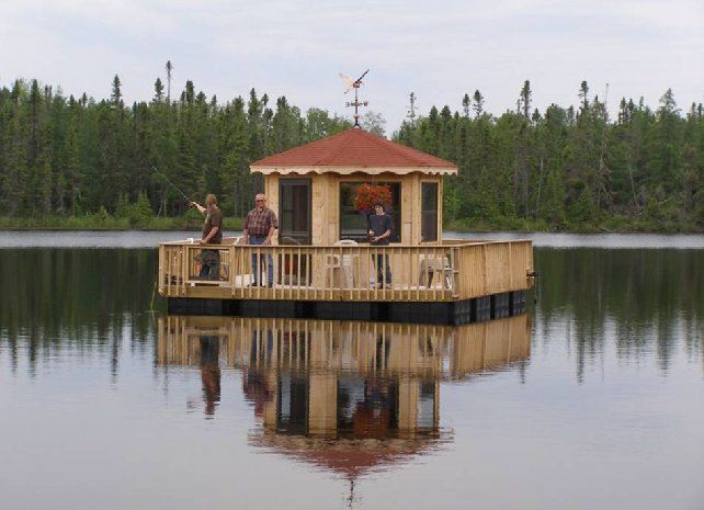 I was going to build the Gazebo on the edge of my dock down by the lake but I thought I might just as well build the deck with floats on it and I can then take it out fishing too...It has 15,000# capacity. The deck is 18ft x 18ft with 12 plastic foam filled dock floats that are 4ft x 4ft by 18 inches high and the Gazebo is 10 ft. Hexagon with a table and chairs. Inside, under the table is my trolling motor so I can take it out to my favorite fishing hole.. The trolling motor is remote controlled wireless so I can be fishing outside and operate the motor. On the top of the table I have a LOWRANCE Fish-Finder with depth sounding sonar's and temp gauge. I have 2 electric winches with 40# anchors. I have also built in a water pump so I can clean the fish right on the spot. Now I can relax and fish while my wife can sit,watch TV and relax. THERE ARE PEOPLE WHO FISH, AND THEN THERE ARE FISHERMEN !!! THIS IS HOW TO FISH EAT YOUR HEART OUT ,"BILL DANCE"