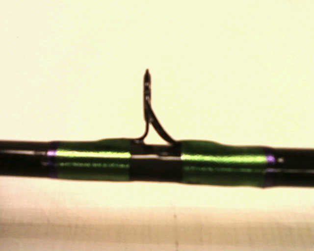 Phew!....alot of trail and error,but i got it done monday night....Im very happy with the outcome of it.....there's a few imperfections that happened with the final thread epoxy....we had a humidty of about 90% that night and i didnt take that into consideration..oops!...no big deal though, it still turned out great,just took forever to dry and i stopped the little electric motor turning the rod too soon..it still leveled out fine,just one or two little spots .....also what sucks is when i applied the color preserver,we started on the chrevon wrap first,turns out my dad's color preserver was old and expired ...so it left it a little milky and splochy....got a new bottle and no problems on the rest.needless to say his thread epoxy was old too ![]() forgive the pics (phone) i couldnt get a better pic of the chevron wrap....the pattern is 2-2-3-2-2..(bigbassin,lol) over all Im pretty proud of it,it was alot of cussing and scaring my dogs.....but i learned alot of lessons/tricks to make the next one easier... 7' MH med-fast tip....the grip is 10'' dead on,from the reel seat to the butt,and feel extremely light and well balanced. i gotta take better pics....these arent doing it justice