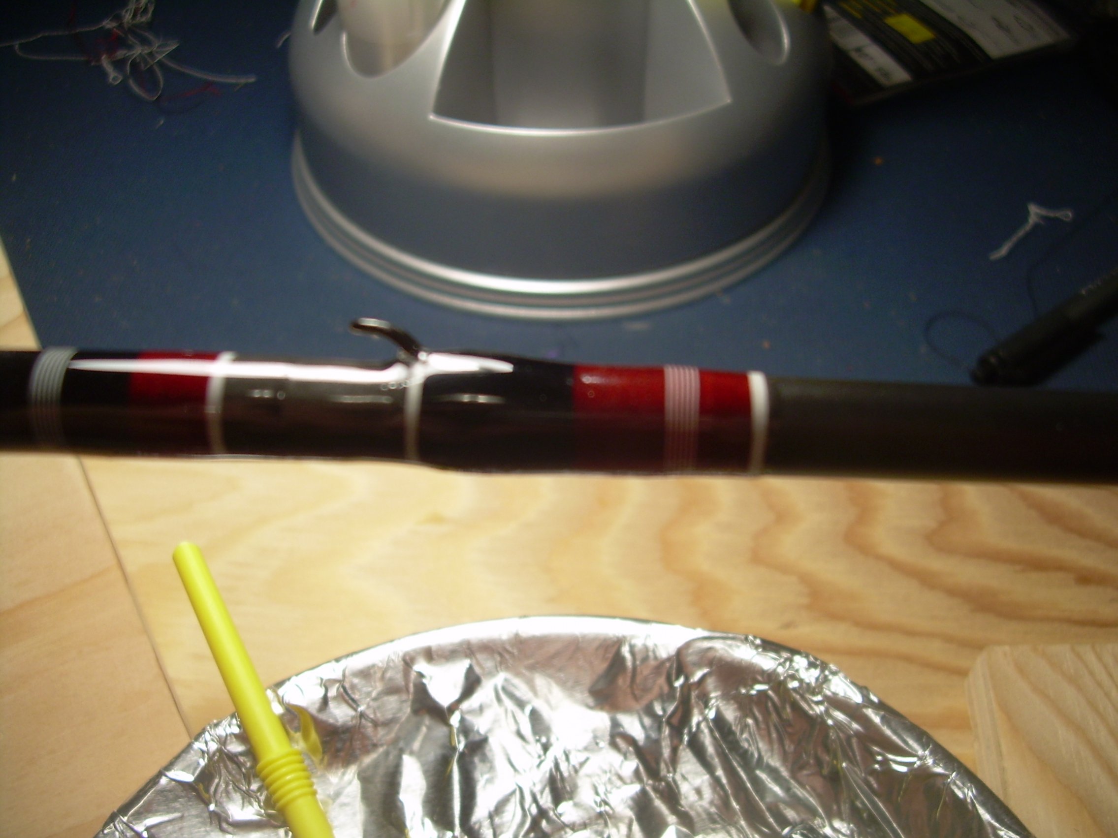 My original decal was white lettering with black background...Only problem is you still have to do a white underwrap with the thread..thats what creates the white letters (printer wont print in white...its clear)....I try that first with horrible success...I need to practice the decals more..I got a golf shaft to practice on....Ill work on it till I find a good approach Apparently the blemish is called a ''fish eye'' its a spot that rejects the epoxy...Im still learning more on it....blah,What a f**king pain!..haha Thanks again!...Im gonna take some better pics this weekend after its fully cured.