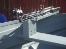 here is the boat I got from John and the cool mount he made for his FC motor, The motor is off, my plan is to put a small piece oF metal plating on the bow end,laeving a lip to screw the hand contaolled on. I got a one year old 36# for 45 bucks today! Here is Pic: