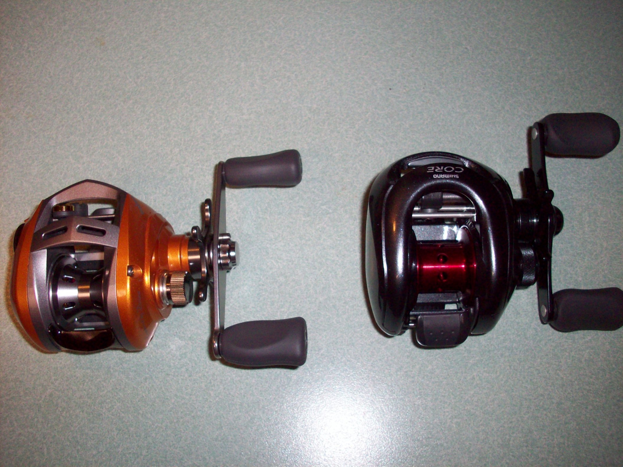 Stopped by a local tackle shop today a little south of town... my main reason for stopping was because I heard they were selling the inventory to another shop owner, and it was going to close down. Well today was the last day the shop was going to be open... The guy behind the counter said he could cut me a deal on the reels left in the case... in the end the guy told me all reels in the case were 50% off!!! The only thing of interest to me (he had a lot of really old stock Abu's and some really Old Quantums) was a Daiwa Sol Casting Reel and a Shimano Core 100MG both brand new. We agreed on $300 for both of the reels out... no tax and out the door price! I really need to stay out of the tackle shops....