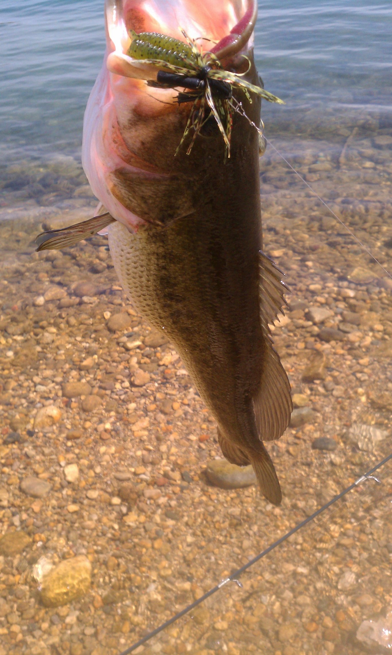 was fishing a quarry today that ive only fished a handful of times, never caught anything & never saw anyone ever catch anything,(was starting to question if there was even fish in it). bite was slow as usual and figured tie on a jig and practice with that since nothin else was happening with any other baits.. 5th cast bounced it a few times and WHAP!