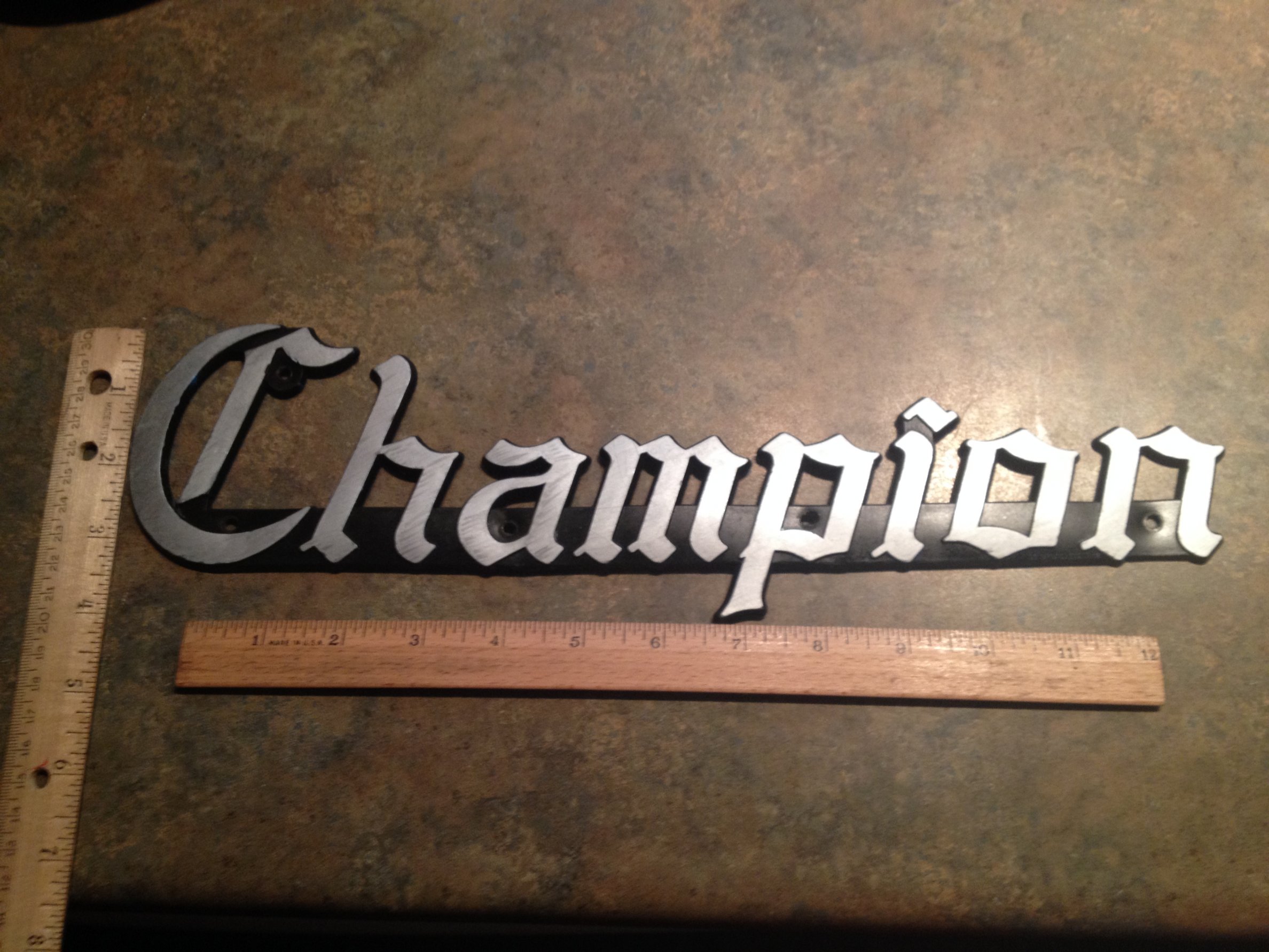 Hi folks, I am looking for a mid to late 1970's or maybe early 1980's champion emblem. These were the ones on the consoles just below the windshield. They were a gothic script style. If anyone out there has one for sale or knows where I might find one I would appreciate it. Thanks, Bill