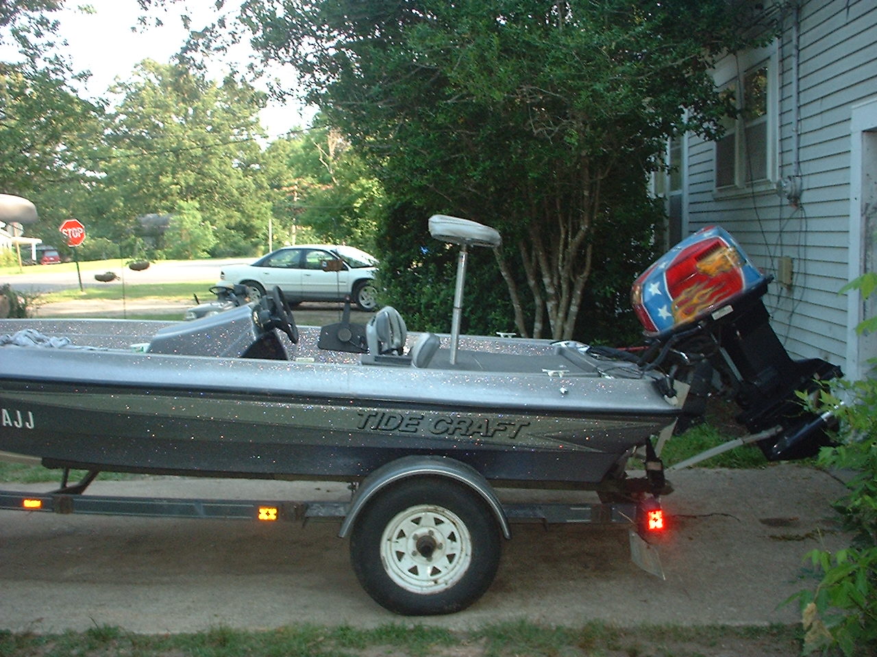 laser......pal........ I LOVE THE PAINT JOB ON THE MOTOR MANNNN!!!!!!!!!!!!!!!!! AWESUM!!!!!!!!!! nice tide too (hehe) love them tidecrafts. really good boats. almost bought one years ago. couldn't afford it then. and a bowtie to boot, great set up. we'll get you something to throw ol buddy, just hang on pal.