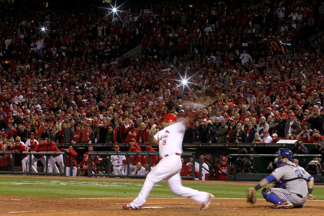 I'm a huge cards fan and didn't think I was gonna survive last night!! wow! One thing I didn't agree with Ron Washington about was him walking Pujols to face Berkman late in the game..I know Pujols is one of the greatest if not the greatest player ever, but you gotta play in the moment. Berkman had been killin the ball all series and if I'm not mistaken Pujols had been somethin like 0-16 up to that point since game 3..There's those that will say hind sight is 20/20 but you gotta play the numbers..for the most part sports is a "what have you done for me lately" business and Pujols was slumpin..Call me crazy but that's my .02