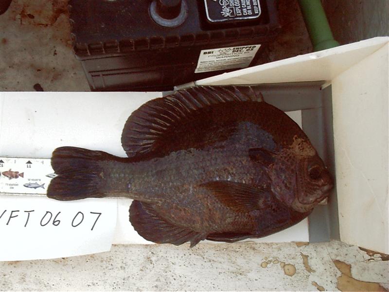 Got a 10.25 inch bluegill on a rattletrap and a 17.5 inch largemouth.