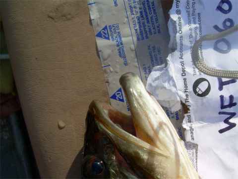 Went out on Clear Lake with Deacon on my boat yesterday.We found cold, clear post front conditions and didn't have great expectaions. Water temp anywhere from 44 to 48 degrees throughout the day and visibility of 1 to 3 feet. It proved to be a fairly slow day with us catching prolly 15-18 or so bass, a couple crappie, and one gill. I also see after looking at my pictres that I need a new and better measuring tape for photographing.