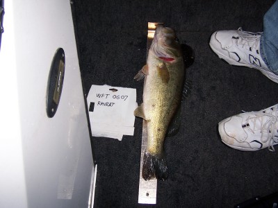 Anyway, we ended up with Deacon scoring a 9 inch bluegill, a 14.5 inch crappie and an 18.5 inch bass. I ended up with a 20.5 inch bass, an 18.25 inch bass, and a 12.5 inch crappie. I didn't get a bluegill like Dinkon did though. I don't have as much practice catching bait like that. If you can't see the measuring board well enough and don't want to count those fish since the numbers are not showing up real well, We'll understand, an we'll just have to go out and catch some more next week. We both stand behind those measurments though. The 20.5 inch bass weighed almost exactly the same as the 18.25 bass on my cul-m-rite. I don't know if it was because the longer one was so skinny or the shorter wone was so fat, but they both came right at 3.75 +/- a couple hundredths. Also this was the maiden trip with my new truck pulling the boat. My new 5.4 F150 pulls the Champ a bit easier than the old 99 F150 V-6 for sure. |