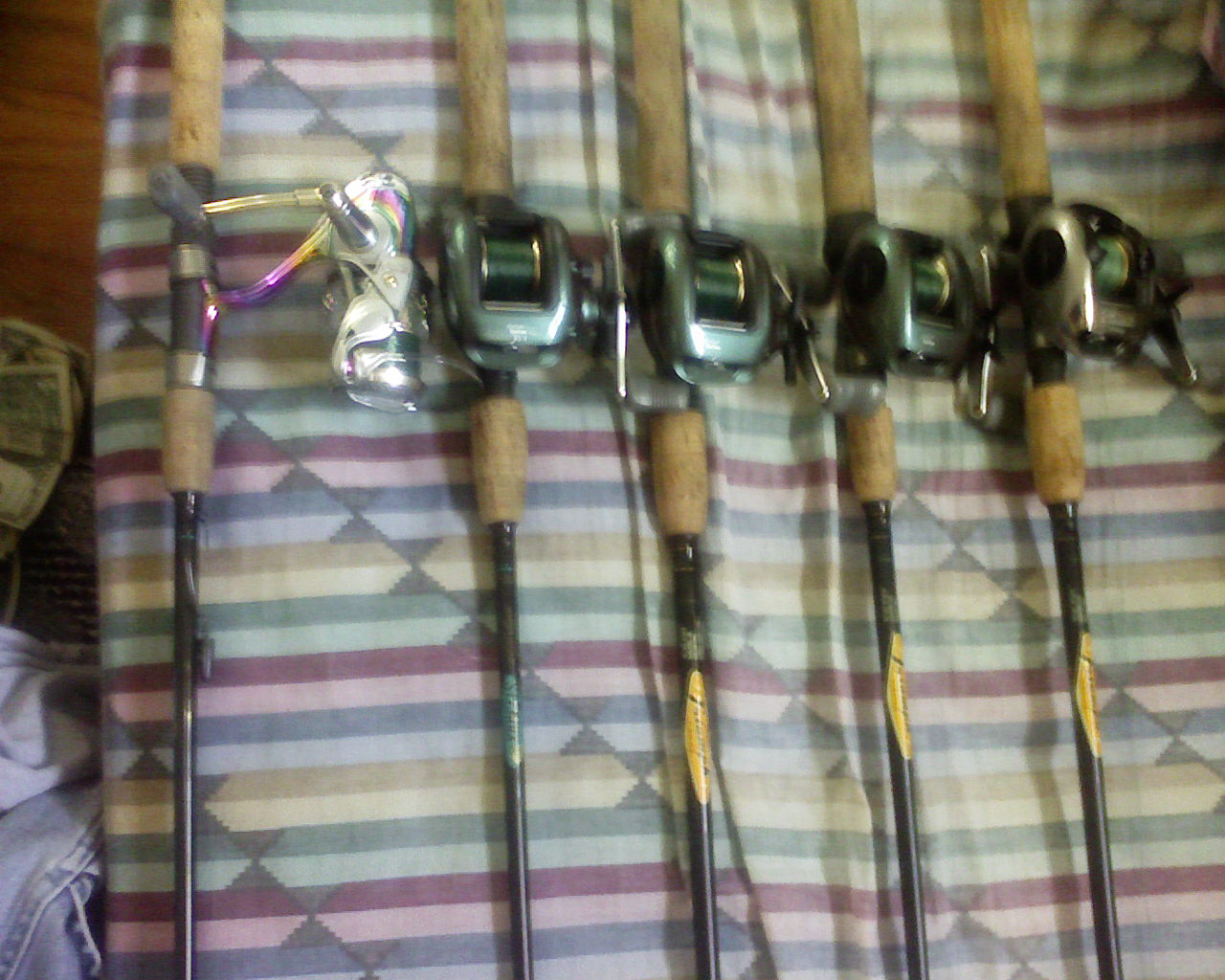 2 shimano curado 201 b (70$) each 1 shimano curado 201b5 (70$) 1 castaic sf 201 (100$) 1 quantum energy pti 30 (100$) 2 st croix triumph medium heavy 7'0 50$ each 1 st croix premier heavy 7'0 crank bait 70$ 1 st croix triumph medium heavy 6'6 45$ 1 st croix premier medium heavy 6'6 (spinning) 60$ nothing more than 3 months old will seperate everything all prices are pay pal fees included shipping on rods 5 dollars will accept all reasonable offers!!!!!!! please feel free!!!!!!!!!!!
