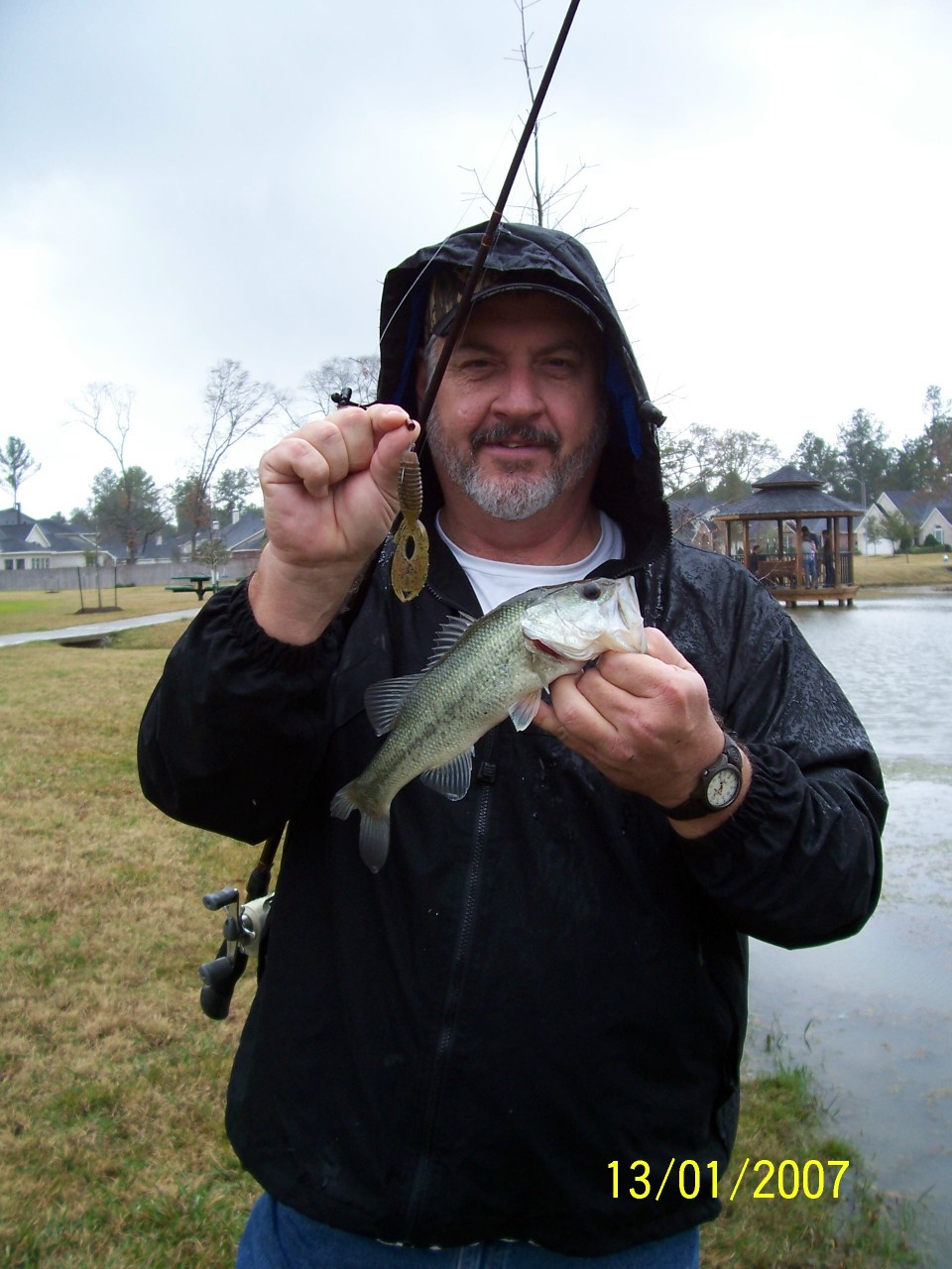 We went to one of our local neighborhood ponds today, and caught a total of 6 bass today. The conditions where cloudy but a bit warm, some sprinkles and a little wind now and then, we used plastics for this trip, and all the fish where caught with the 4 inch beaver. Here are a few pics.