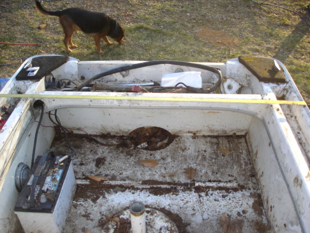 Here are some more pictures. I removed the side console and there was nothing on the left side of the transcom. The one picture attached is from the right side. I hope you can identify it from these pictures. Thank you so much for helping. I know it needs alot of work, but hopefully I will be on the water this spring. Oh it is fiberglass