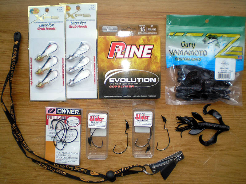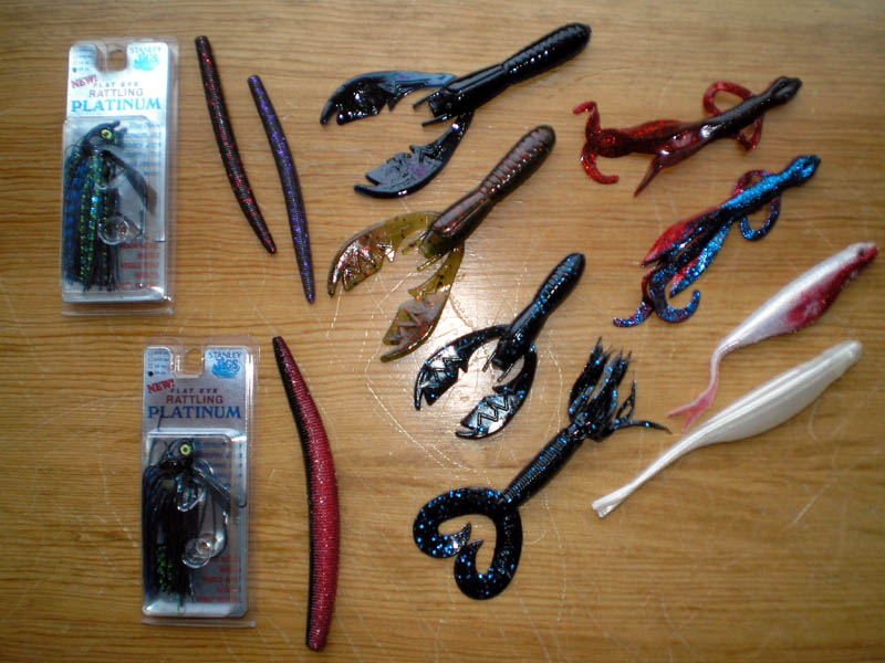 I have an idea. I'm curious as to what others in this forums are buying for getting ready for bass fishing 2007. I spent the weekend at our new BPS, and also at Gander Mountain and Dicks. Still have a depth finder to buy yet. Maybe a new bait casting outfit. Waitting to see if the depth finder goes on sale. Anyways. Here are some pics of what I bought this weekend. Had a blast. The last pic of the 4 spinnerbaits, I got from good o'le Rebbasser! He makes great spinnerbaits. Can't wait to try them out. Thanks again Reb. Lets see what else others are buying. Post your pics!!!