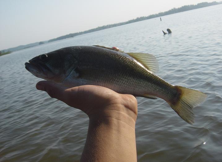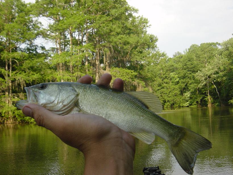 A small bass caught out of Perry lake, an oxbow of the cahaba river.