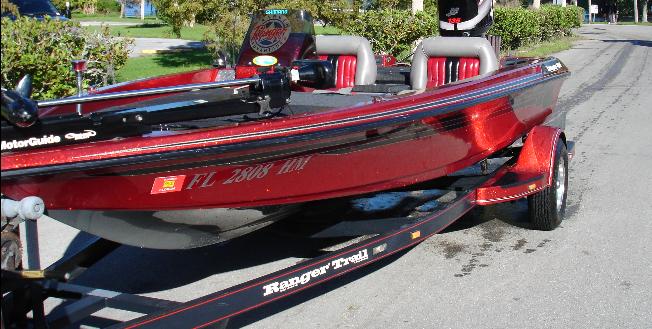 this is a mint condition Ranger 451v 17.5' bass boat. it has a motorgiude 67lb thrust troling motor with onboard charger. the boat has all gauges and everything works perfect. it has a nfb helm (no feed back helm) the closest thing to hydrolic stering. also a BOBS MACHIE hydrolic jack plate. the trailer is in perfect condition with brand new tires including matching spare. all light work as well with new berrings. thanks steve 727 - 512 -5778 can email alot more pics upon request
