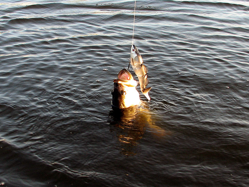 The pictures are below If you look closely at picture 4 you can see a shad being blown out of the water. Picture 5 is my first fish on the River2Sea Kong (pic from last week). Keep in mind the lure is about 8". Never pulled the fish out of the water due to it bleeding. Probably over 5lbs if I had to guess. Missed one that would have been my personal best, but it spit the hook. Got a good look at her though.