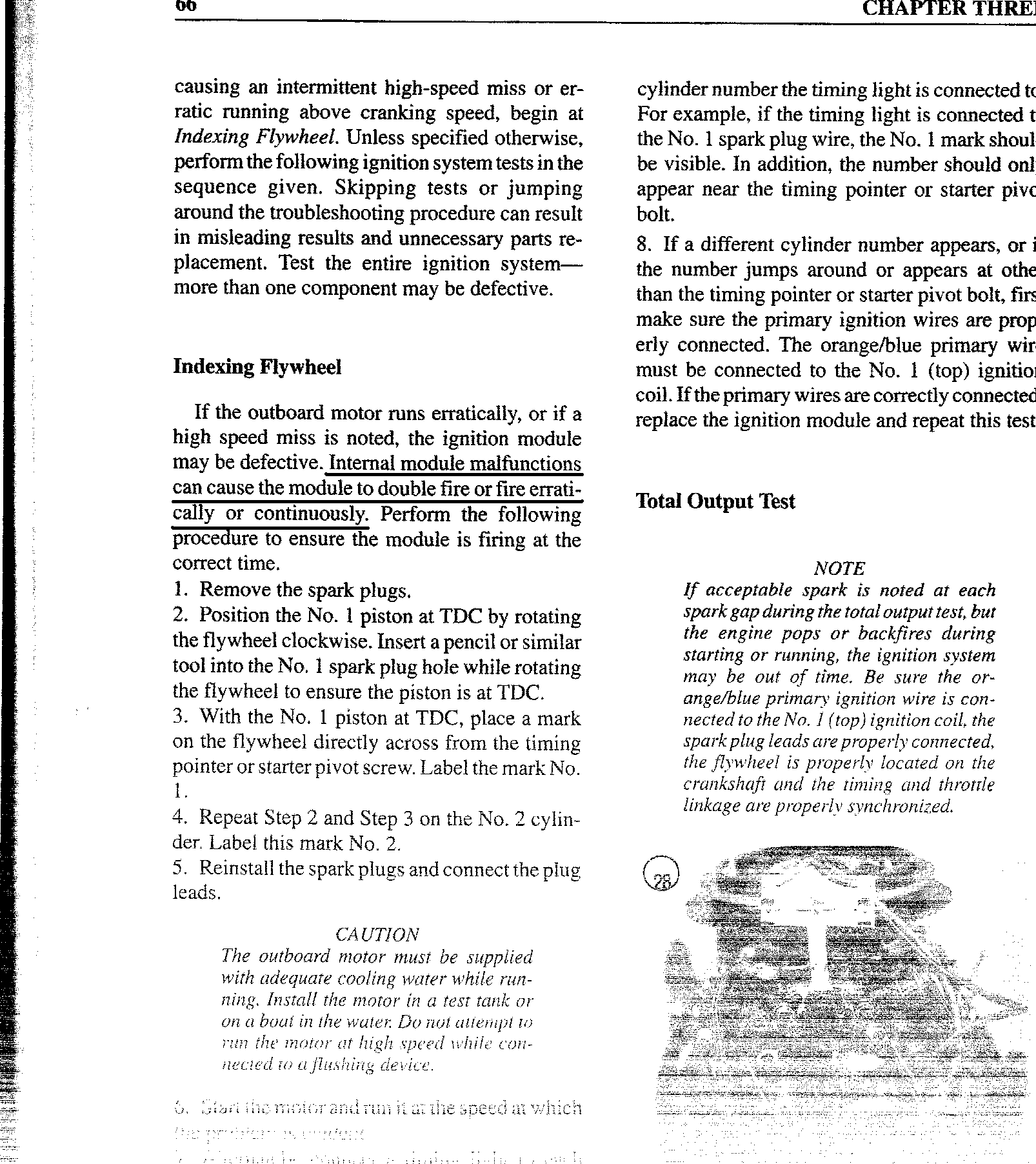 Yes, I ohmed the coil, before and after replacement, plug wires also before and after replacement, and checked everything I could without the "Stevens tester" that the manual refered too. Give me a few minutes and I will post up the info in my book. (I will scan it) For what it is worth, I talked to a machanic at another dealer and he said that he HAS seen it before and he has never seen it not fixed by replacing the power pack. Which is basically included in this module. I bought a new one today and will be installing it. I got it from the same place since they are the only ones that carry OMC parts and talked to a different guy. He seemed suprised they wouldn't warranty it and told me if this fixed the problem to come back and talk to him and he would see what he could do.