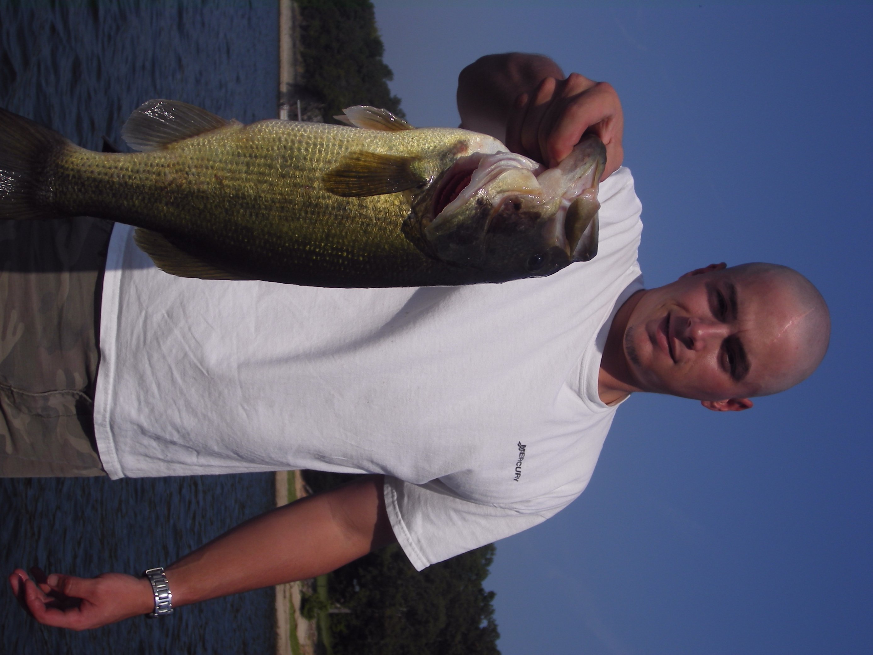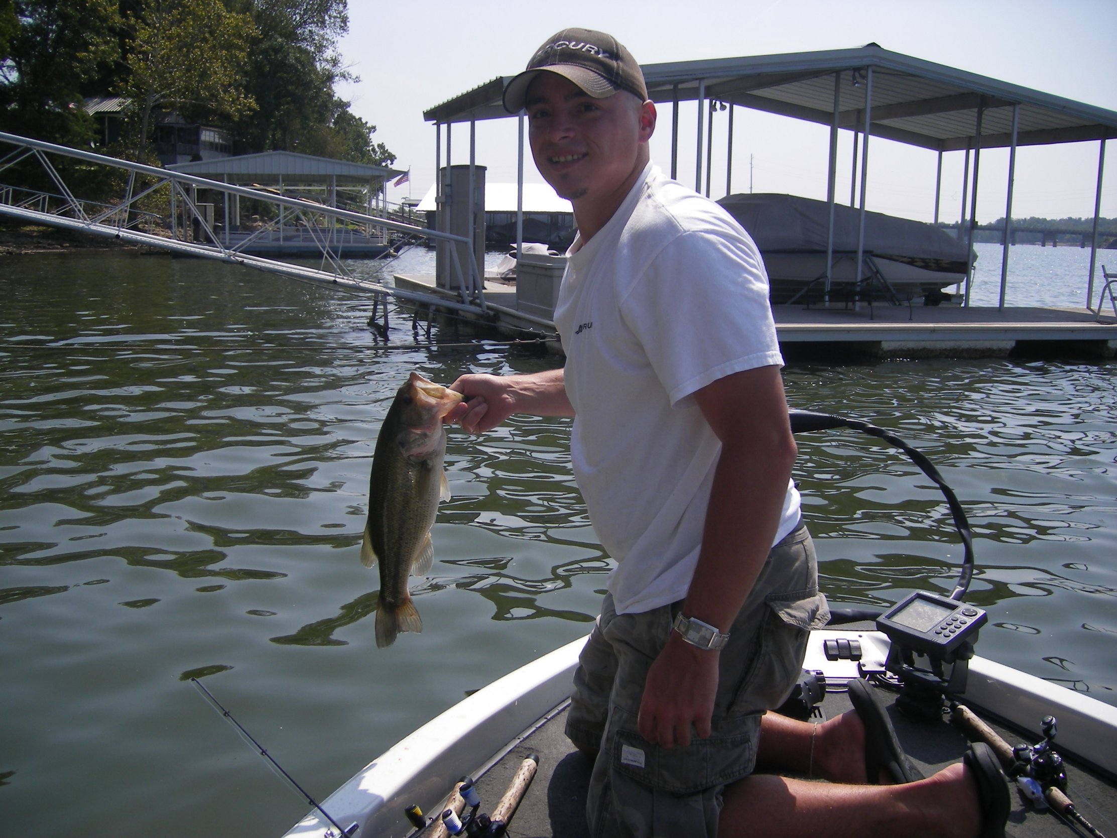 Went to Grand today (in northeast oklahoma for those who don't know where i am talking about). this lake has a lot of tournaments (some have close to 400 boats in them), and a 20lb bag will always put you close to the top of the leader board and a lot of the time 20lbs will win a tournament. anyways i got on a good pattern early on windblown chunk rock banks. not all my pics will load onto the computer for some reason but the final with my best five would have put me somewhere in the 20-22 lb range (this is if you count a giant that my wife knocked off with the net, i count her because anybody with much experience around a net would have netted her with no problem.....but i guess it happens. anyways the biggest fish in my pics weighed just a shade over 5 and this big fish that my wife released for me was bigger than that so i called her 6lbs) no matter how you slice it, this was a great day and in the last triton tournament on this lake which had 305 boats this bag would have been worth somewhere between a new triton bass boat and $1,900. all fish were released alive and we were off the water shortly after noon.