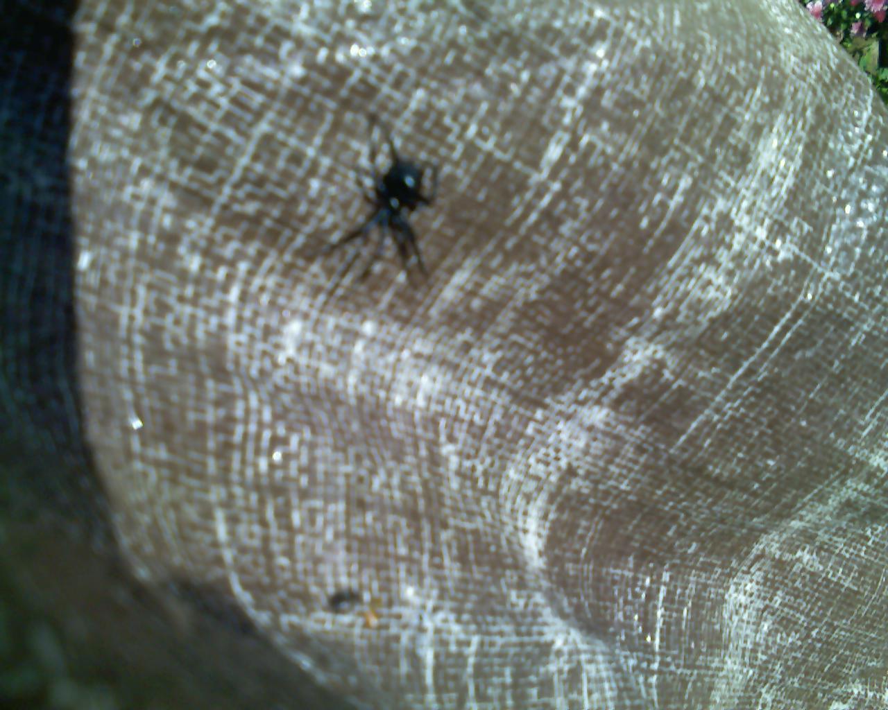 so I poked her with the cell phone and snapped a photo. I then flipped the tarp over and sure enough two more, the third being the largest, on the other side. Cell phone doesn't take good close ups . First time I've ever seen a black widow and I come across three of them. I've got to get me a can of spray and go on a spider hunt. |