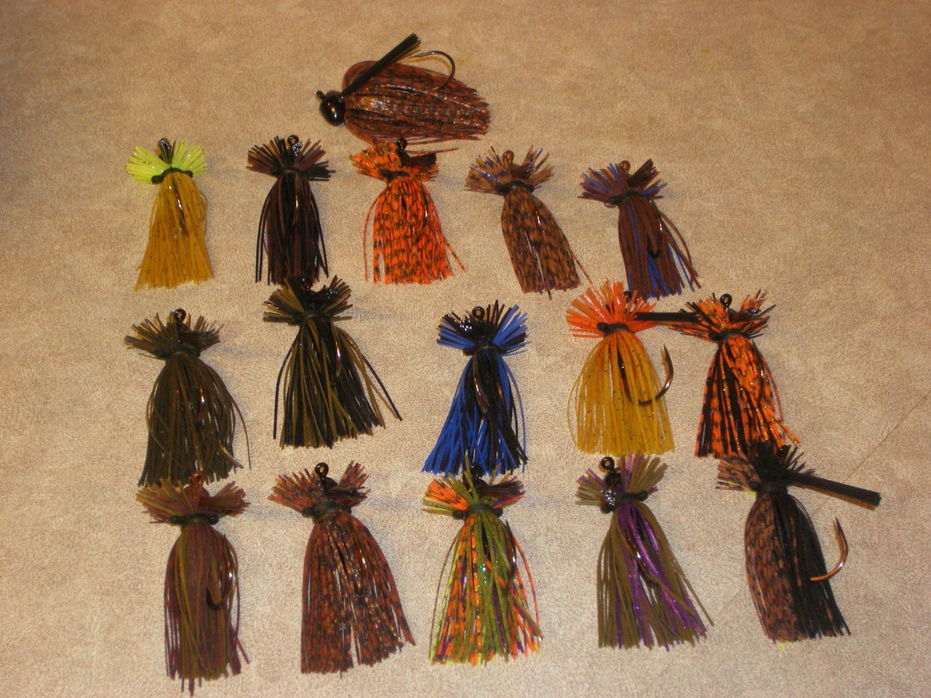 Well we are finally in the process of adding these jigs to our site so I had to make one of each color for pictures. I usually just put the ones I use for pictures in my box and use them but I really don't need anymore of these yet so I thought I would give you guys on here a shot at them. these are all 5/16 oz roundhead jigs featuring a 4/0 Mustad Ultrapoint hook and an 80 strand skirt. There is also a 1/2 oz rusty craw football jig included because I needed one of these for a picture as well. I have attached a picture of the complete lot, there are better pictures on our website of the colors but these exact jigs haven't been added yet so the pictures on the site in full skirts on football heads but the colors are the same. There is a total of 16 jigs in the lot, one finesse jig in every color we sell and one 1/2 oz Rusty Craw Football Head Jig.