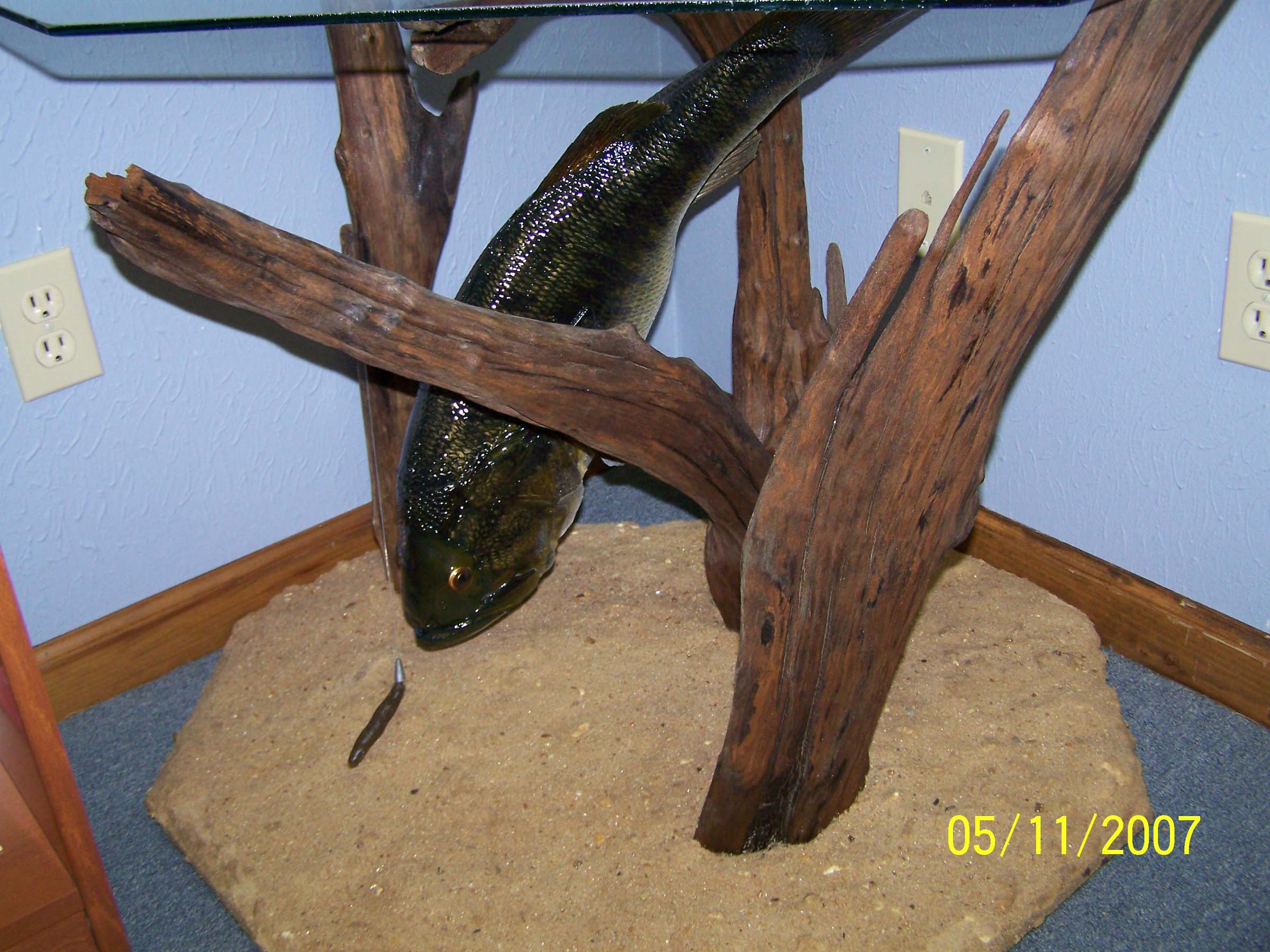 Ok, well i've posted this pic before, but with winter coming up, i was thinking of making a few of the displays to sell. I also was thinking of making a few with old fence posts w/barbed wire or tree limbs and leaf litter for the base for mounting deer antlers, bobcats, squirrels, etc. Another idea is making them with cypress knees for crappie or coons. What do ya'll think? You think there'd be any interest? (Animals not included)