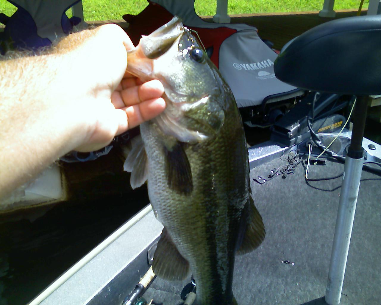 Got out on the radioactive mudhole and thought I'd play with a couple baits and one of C-rigs latest. Caught one on the Magic Swimmer and a Senko type bait but figured I'd see what the RockStar would produce. Added a 3" Chigger craw in GP and played with the bluegill for a little bit. Finally pulled a keeper that went 13-14". Moved to another dock in another cove and found a better fish, 2.5+, on the new Senko rig I was taught a couple weeks back. Good thing I was using braid cuz this one sucked the bait off the surface as I was attempting to bring the bait up and over a bolt that the line crossed on the cast under the dock.