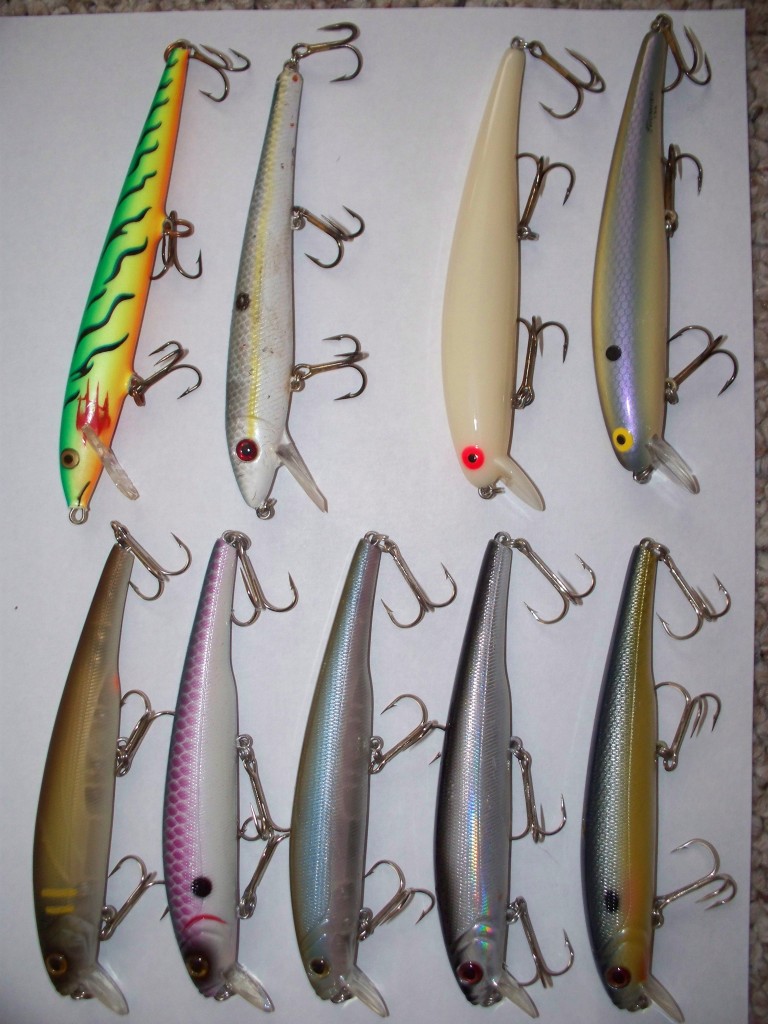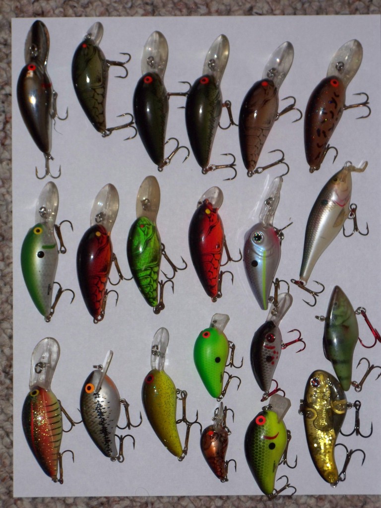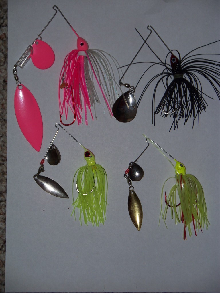 The spinner baits are Strike King KVD series, booyah, and Stan slone. The jerkbaits are BPS series, bomber, rapala, and strike king. I also have two rod handle wraps that are blue and are 24" and a750 yd spool of 15lb. calcutta line. The crank baits are assorted bomber, norman, sebile, rapala. Also assorted jigs and topwaters.
