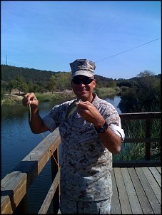 One of the guys I work with is a salt water fisherman who has never really gotten into Bass fishing. Since we have a pond on base, he has spent the past week trying to land the elusive LMB.