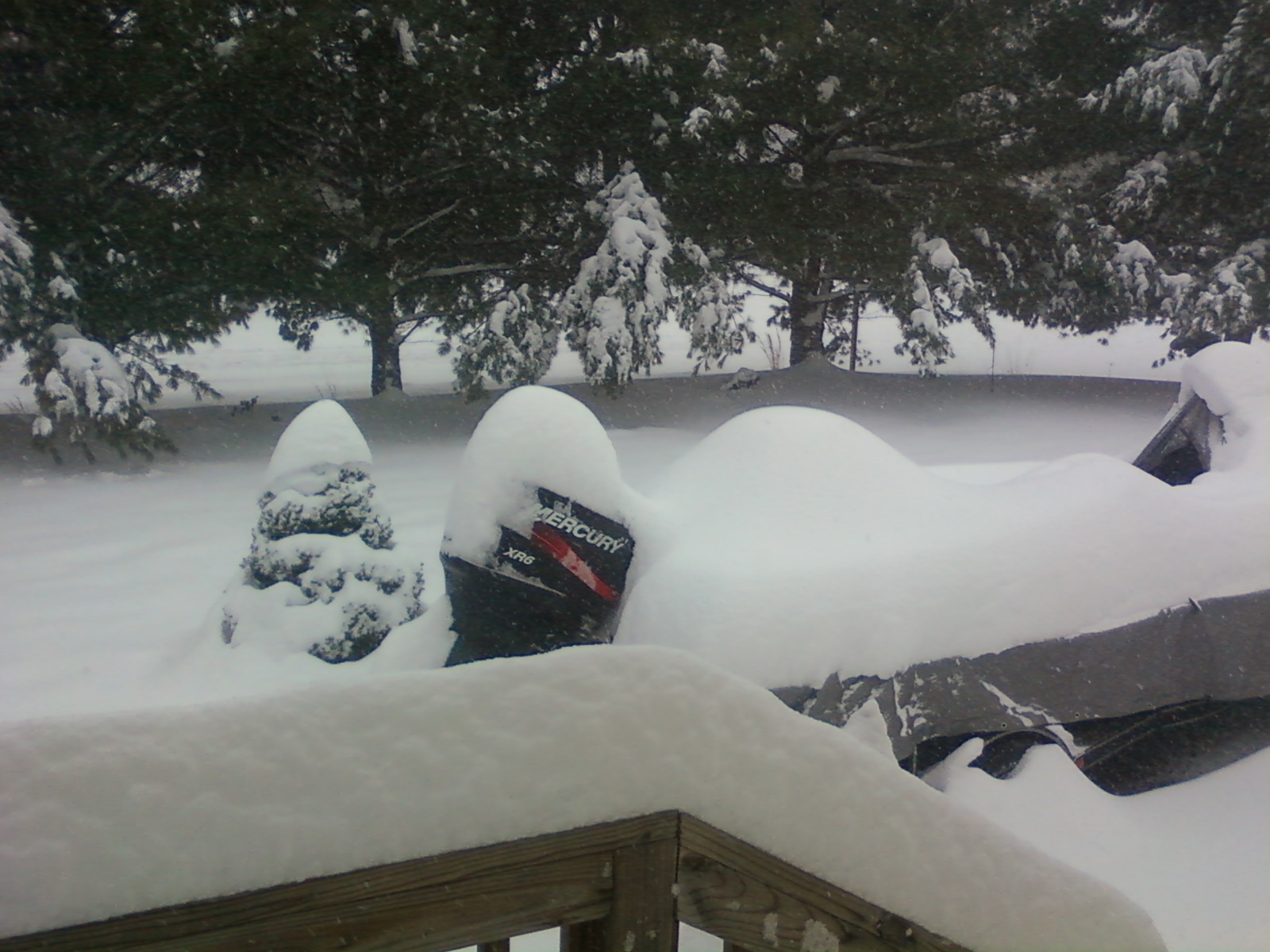 It's still snowing. Had 5" in 2 hours last night. Got home after 8:30 with about 1/2". Took first pic at 10:30 and had 5" + on the deck. Here's a couple pics from today and it's really coming down now. 2" an hour easy. Probably have 15" or close to it.