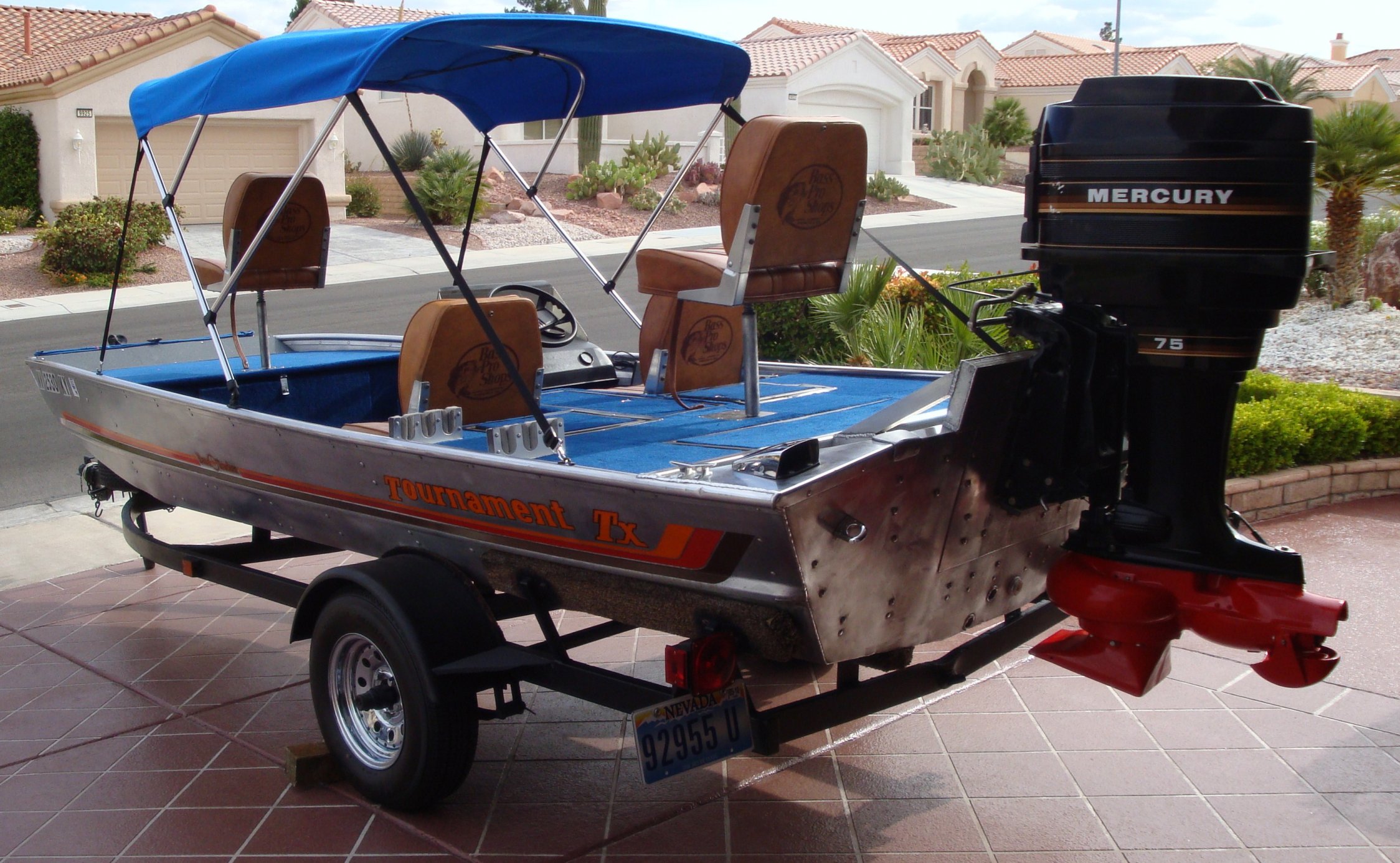 Awesum cass! Jet drive, canopy (don't throw it away, it'll comein handy when the family goes out with ya) and RESTORED! This is a VERY nice set up. That motor will make oyu feel like you are flying on the water. 75 hosses on that rig (aluminum flat bottom) will for sure get up and go. Be careful when you first take her out. Personally i love it cass. would love to have it myself. You will be able to fish in spots NO ONE else can. Let us know how it does for you. Post pics of the maiden voyage!