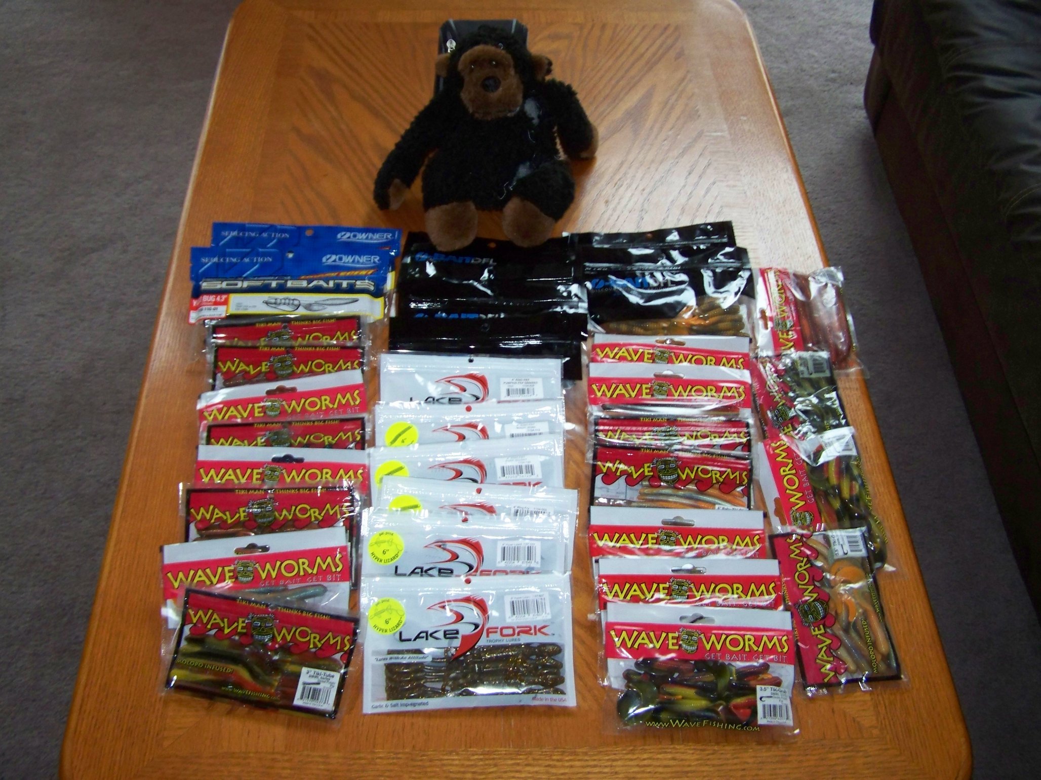 Tackle Warehouse and Overstock both showed up today. Lake Fork Hyper Lizards Ring Fry Owner Yuki Bugs Wave Worm Tiki Grubs Tiki Stiks Tiki Tubes Tiki Paddletail Shads O-Bait Drop Stiks Para Bugs