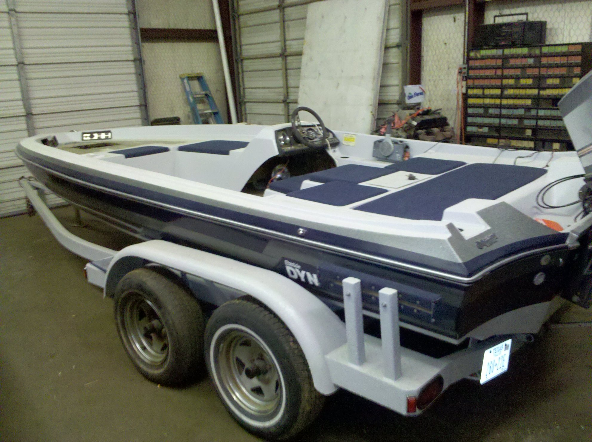 Back in January I purchased a 18' Ebbtide DynaTrak 179 w. a 150 HP Yamaha. It had a tandem axle trailer and had been sitting for 7 - 8 years. I paid a $1000 for it, not knowing what I was getting into, except I knew after inspection it was going to need some work. I had to rewire the motor because mice had eaten the wiring off. I am restoring the boat. I have spent about $1000.00 in the process, but everything has turned out great. The motor after decarbing has compression of 115# on all six cyls. and runs great. I am in the final stages, and she will be taking to the lake soon. Don't be afraid, just be thorough and do a little as you go along. |