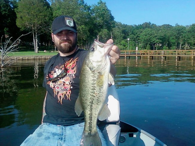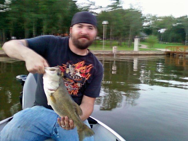 ![]() We started off In the back of the creek...You talk about beautiful..it was loaded with stumps,grass,trees..All in 5-15 ft of water We started off a little slow working spinnerbaits..Then I went to the bottom with a Senko,then a hyper worm....My Dad smashed the first fish on a white/chart spinnerbait right at 3lbs!. We worked our way back to the docks...I was joking how I never caught anything on jig but I had to throw it at these dead trees....Shortly I missed a hook on a solid 2lber.(he jumped right after I missed)..Further down I hooked up my first ever jig fish...A dink! ![]() We trolled to the other side of the dock..I hooked and loss another solid fish...A big boy at that ....My Dad to check the weed guard....He was right,It needed a trim,so I did.Not moments later my Dad hooked into the biggest fish yet off the corner of the dock..He fought him to the boat and brought him to my side...I grab the line and brought it up...This was seriously a 6-7lb fish no joke!!...I had this fish half way out and he snap his head to the side and snapped the line freeing himself ![]() ![]() ...We sat in silence for awhile...And what sucks is we were both thinking we needed the net on deck...We pulled it out and used it religously after that!I tied on a white jig....And while my Dad was going back to a spinnerbait he made the comment ''That looks like a good place for a jig''...lol...I said alright and the first cast landed my second fish at 3.3lbs!!..It was game on!...I broke the white jig off and went back to the first one...We started fishing piles of dead trees...I hit the third fish 3.0lbs even...We found a nice drop from 5ft to 19 ft....I hooked up to another fish on a tree 2.14 lbs...Then my Dad miss one on his jig. I switched to a carolina rigged Senko to fish the deep water...No luck...It started getting late,so we went back to the docks for another crack at that monster bass....I ended up picking up three more solid bass on that same jig...I couldnt believe it....My Dad had a good bass on that spit the lipless...Nothing more as the sun went down....It just amazes me that the one lure I never had any luck on was the best lure to give me the best fishing day I ever had....7 fish boated...6 between 2.5 and 3.3lbs..I am very satisfied. We will be back soon!!