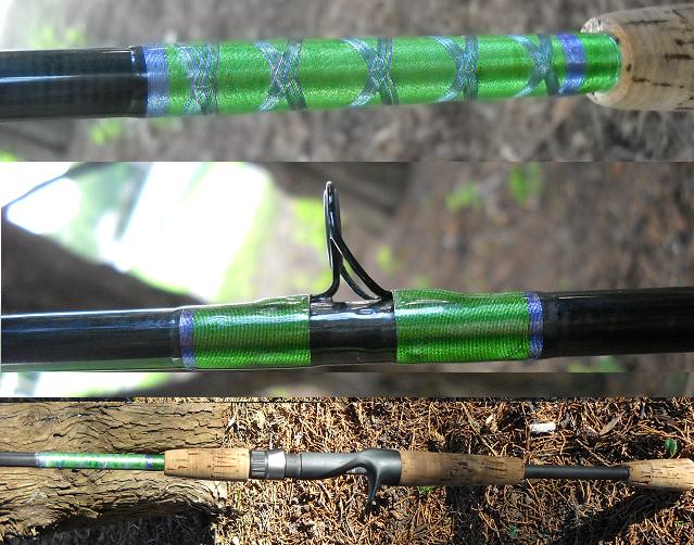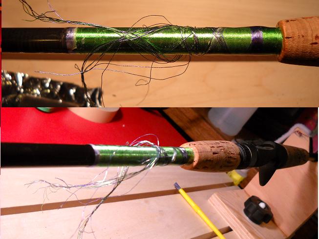 As Im going crazy with nothing to work on..I decided to start a progression thread of a strip and rebuild or my first rod..(My Barlow's special) .A 7ft MH/fast...Its been a great rod, but as my first build it had alot of blemishes.....epoxy sags,epoxy not fully cured due to bad mixing...Using old/bad color preserver on metallic thread left it really splotchy...(You dont have to use CP on metallics I later found out)