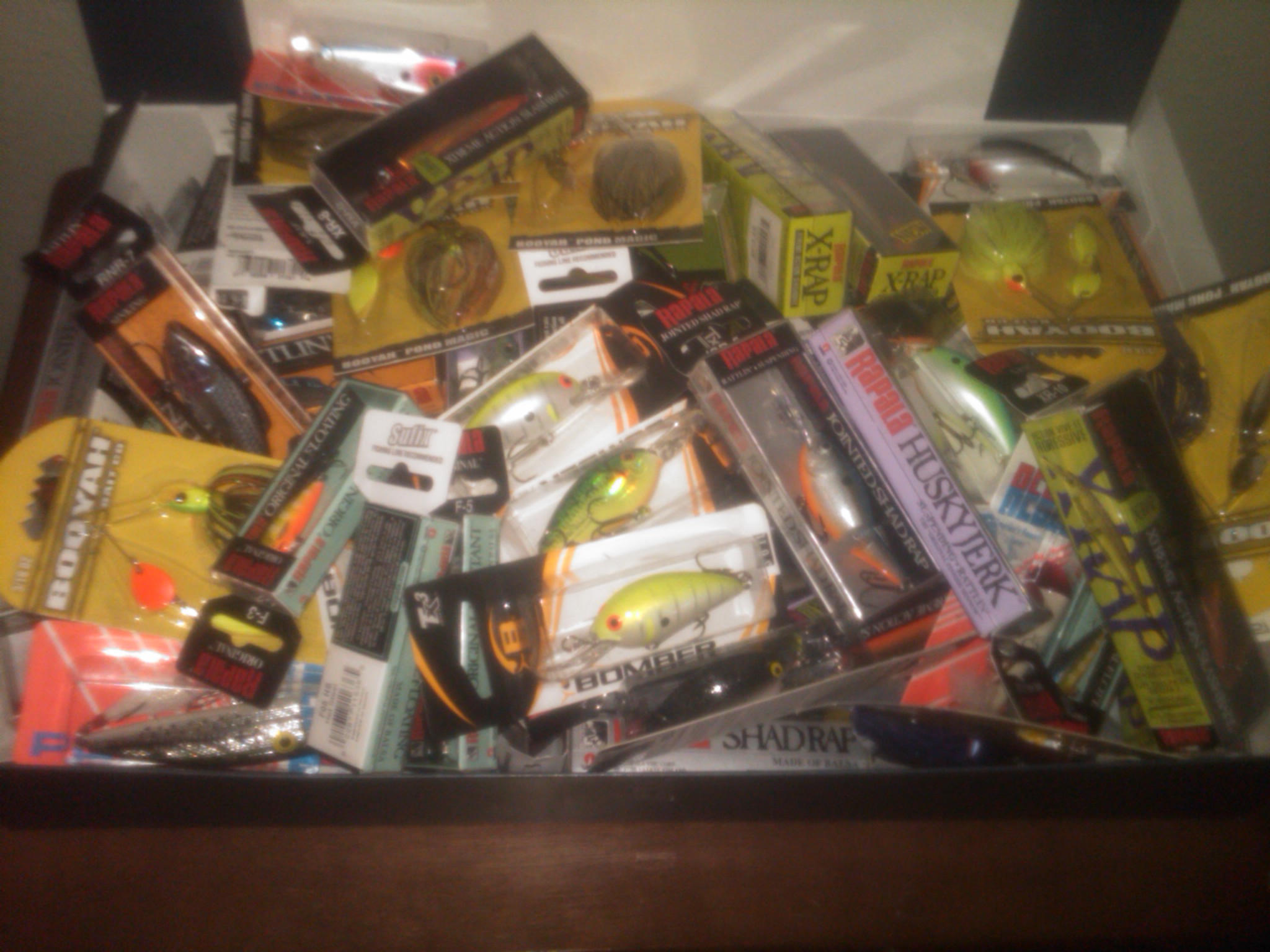 I have to agree with 3D. It’s hard to tell in this picture but this box has 150+ baits in it that I have not even begun to go through and bother to make it to the boat. There is no room in the boat or the man cave. I imposed my own rule that no fishing gear goes in the garage to interfere with my other passion. (Drag Racing)